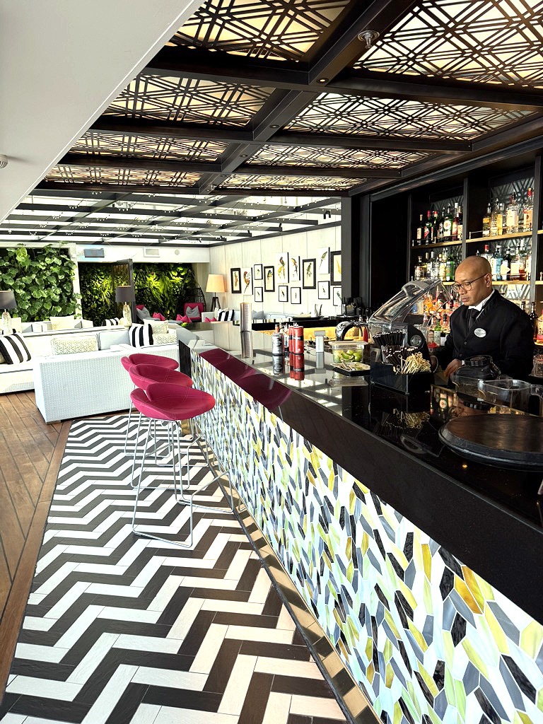 Originally built to host 922 guests, the ship now accommodates just 606 after a 2023 refurbishment under new owners, A&K Travel Group. On our voyage, there were 479 passengers from 24 countries, including 70 children. Even at peak times, it felt as though the ship had secret passageways where guests vanished. Whether lounging by the Seahorse Pool, sipping sunset cocktails, or tucking away in the Palm Court, we found space and quiet at every turn.
