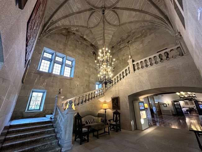 My room had wide windows that opened to sweeping views of the Cíes Islands and the endless blue of the Atlantic. Inside, the decor was regal—heavy wooden furniture, tapestries, and iron chandeliers—but somehow still inviting. The thick stone walls seemed to hum with history, and walking through the fortress corridors, I imagined centuries of sailors, nobles, and sentinels who had once stood in the same spot, watching the tides roll in. That simple connection to the past set the tone for a stay that felt like both a coastal escape and a step into a chivalric past.