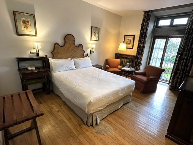 Baiona was the first European port to receive word of Columbus’ discovery of the New World. The replica of the Pinta, docked in the harbor below, is a constant reminder of that legacy. The parador itself is housed in the Condes de Gondomar Castle, and walking along its fortified walls at sunset, with waves crashing below, was a cinematic experience.