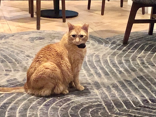 Guests relaxing in this lobby space may meet up with Hamlet, the Algonquin’s ginger-colored feline ambassador who roams about when not napping in his perch by the front window or hanging out in offices behind reception. The hotel has had an in-house cat since the 1920s. Over the years there have been eight Hamlets and three Matildas (the name for females). Hamlet VIII began his residency in September 2017.
