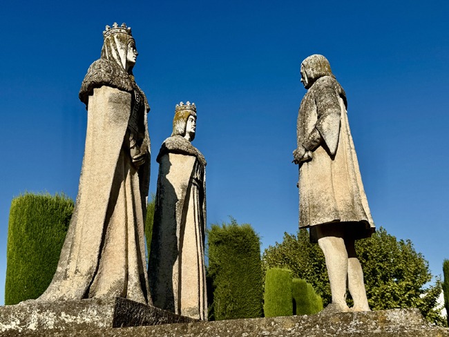 The bridge and Mezquita are a short walk from Alcazar de los Reyes Cristianos, residence of the Christian monarchs. The palace-fortress currently is closed for renovations, but I enjoyed walking through its terraced gardens, admiring the plantings and statuary. One sculpture depicts Christopher Columbus being received by King Ferdinand and Queen Isabella, sponsors of his 1492 voyage to the New World.