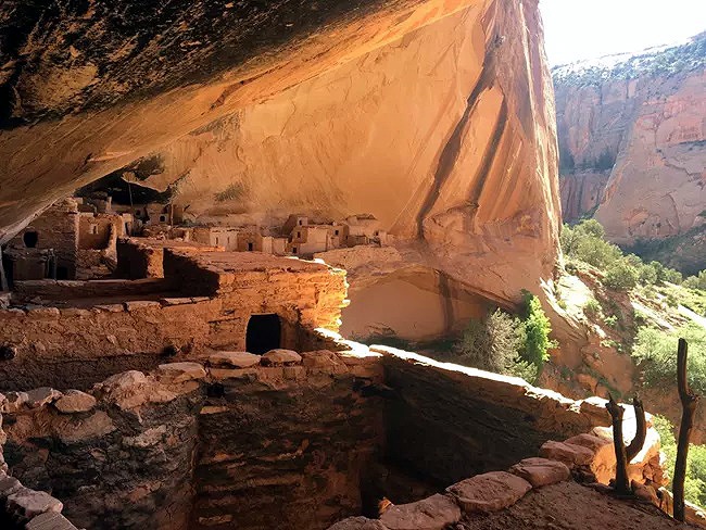 From Monument Valley I traveled west to Navajo National Monument, where a paved trail through a juniper-pinyon pine forest took me to a promontory high above a 13th century cliff dwelling tucked in the canyon alcove below. Trailside signs identify native plants and how the Navajo and Hopi people traditionally have used them.