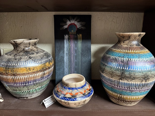 The Hopi Reservation, curiously, is completely encircled by the Navajo Nation. The tribe is known for its pottery, basketwork, silver jewelry and carved wooden kachina dolls.