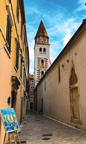 Zadar A full day is needed to explore Zadar’s treasure trove. Situated at the site of the Roman forum, the church of St. Donatus dates back to the 9th century and is one of the many highlights of the capital of Dalmatia. We visit the unique museum of ancient glass at the city walls adjacent to the harbor. Zadar Cathedral is the biggest in Dalmatia. Climbing to the top of the cathedral tower provides sweeping views of the town and port below.