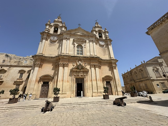 A short walk took me into Mdina, the former capital of Malta and one of the most magical places I’ve ever experienced. Known as the “Silent City,” Mdina is cloaked in a reverent calm that enhances its architectural beauty. I stood in awe at St. Paul’s Cathedral, its elegant Baroque façade a perfect counterpoint to the medieval stone all around. The view from the bastion walls stretched to the sea, offering a glimpse into why so many have fought to control this island.