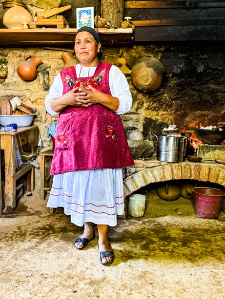 The trip began with visits to the villages of San Pedro and San Pablo Ayutla, where local chef Regina Domínguez and her daughter, Julys, prepared a traditional dish of machucado. Families enjoy this Mixe ritual meal of cooked corn dough, accompanied by pepita (pumkin) sauce and chilies, to ward off hunger and bond around the breakfast table.