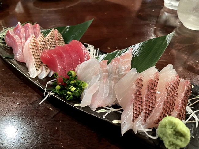 Dinner was at Yohu Izakaya Chara and included sake, assorted sashimi, deep-fried Black Tuna, Barahata tempura (a type of grouper in a light, crispy batter), topped off with Mayo Shimara-yu Pizza: chicken with local spicy oil (because the family with two kids at the table next to us ordered it). Delicious!
