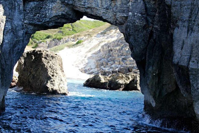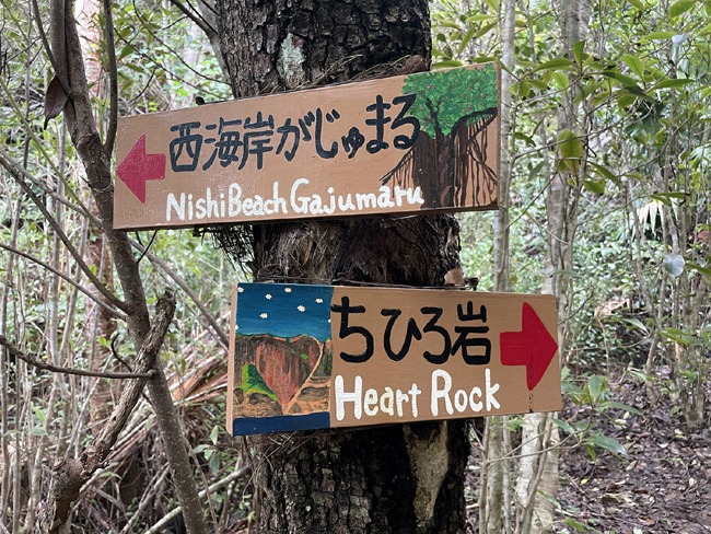 The next morning, we were at the Tamana Bakery for the 6:30 am opening, to stock up on breakfast buns before meeting Yoshiko for the 6-hour Heart Rock trek. Heart Rock is an actual rock, roughly in the shape of a heart, where the pink soil imparts a reddish hue. We had seen the rock from the water on our last trip while we were exploring wind- and wave-hewn land formations, wild dolphins cavorting with snorkelers, secluded sandy beaches, and caves; all of which contributed to Ogasawara’s recognition in 2011 by UNESCO as a World Heritage site.