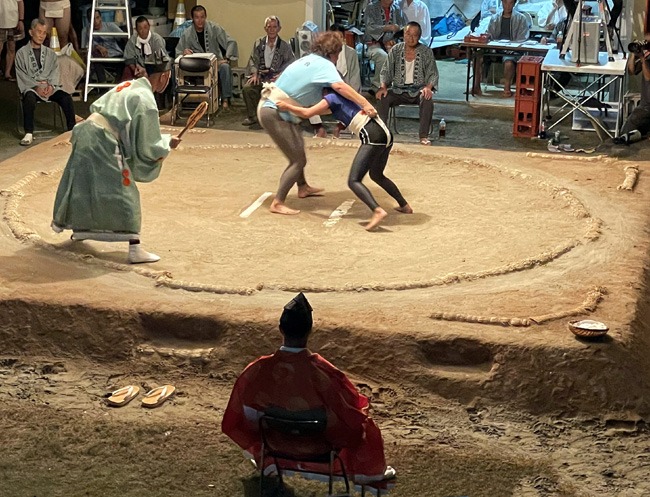 Back in town, as part of the festive weekend, the sumo-wrestling competition was taking place: first for the kids, then for the women, and lastly for the men. The make-shift arena was packed with fans cheering for their favourite contestants.