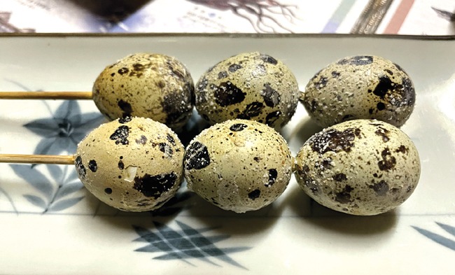 Food wonderment continued at evening meals: Boiled, grilled, and salted Quail eggs in the shell and served on a skewer. (You eat them whole). Shitake mushrooms grilled with sake, garlic, butter, and soy sauce. Luscious, thick and creamy raw Kushiro Oysters. Meaty, buttery grilled Hokke. And the Zangi, deep-fried chicken with garlic, was chopstick-licking good!