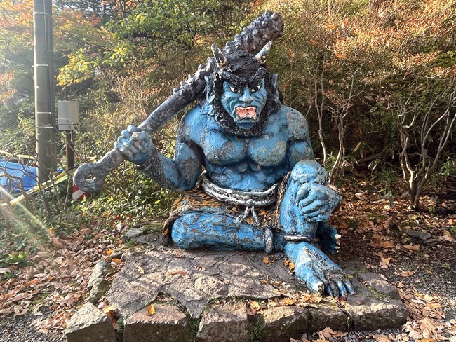 As our train arrived at Noboribetsu, the foremost Hot Springs (Onsen) resort in Hokkaido, more fortune was on the way. We checked into the Hotel Mahoroba and then started to explore. Many stores on the main street, only a 5-minute walk from the hotel, displayed statues of Oni, demonic creatures in Japanese folklore that can bring good fortune and wealth despite their horrific toothy appearance. The largest Oni stood by the entrance to Shikotsu-Toya National Park, where Jigokudani (Hell’s Valley) is located. The sunset lighting on the stark valley landscape, steaming vents, and colorful autumn foliage clinging to the surrounding mountainside was nothing short of surrealistic.