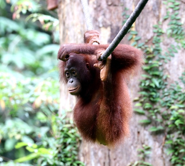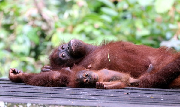 But visitors can learn more about Orangutans, a short drive or twenty-minute walk away at the Sepilok Orangutan Rehabilitation Centre. Males, moms with their babies, and individuals swing in from the jungle toward the feeding platform twice a day to partake of the fruits and vegetables. Antics, acrobatics, relationships, disagreements, and hoarding are all part of the feeding-socialization exercise.