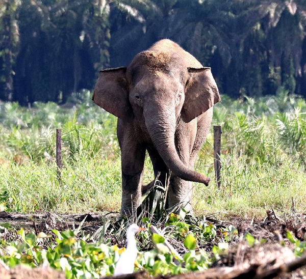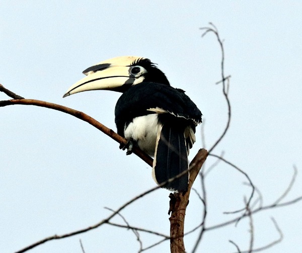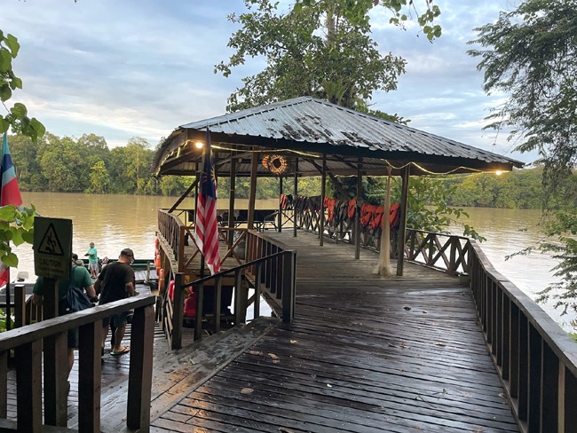 And then, after a two-hour drive, we arrived in Sukau at a dock on the Kinabatangan River, the second-longest river in Malaysia. While waiting for our boat transfer, we excitedly spotted an Oriental Pied Hornbill in a palm tree. We were on our way to the Borneo Nature Lodge, where we would spend two nights in a simple, cozy, bungalow-type room. The Lodge location, in the jungle, on the river, was super-convenient for exploring, and we ended up taking six boat trips from glorious morning sunrises to spectacular evening sunsets, in pouring rain and searing sunshine, and loved every minute.