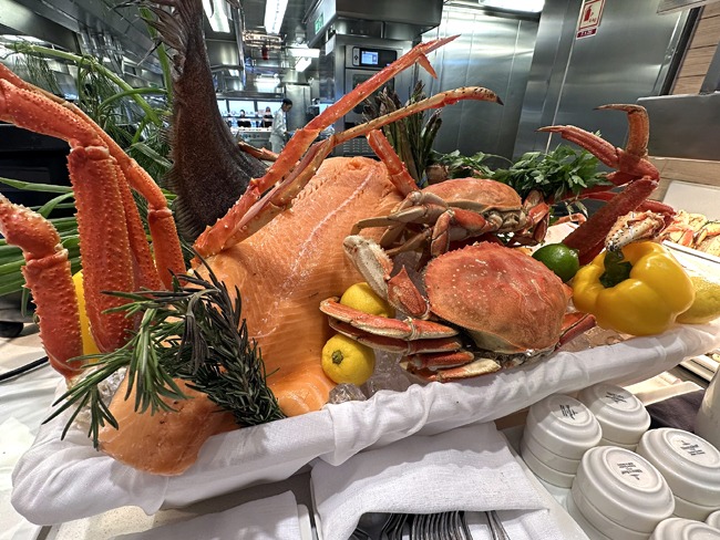 At lunch, chefs prepared everything from grilled seafood caught in Alaskan waters to fragrant Asian noodle dishes. The freshness, presentation, and quality were consistently excellent.