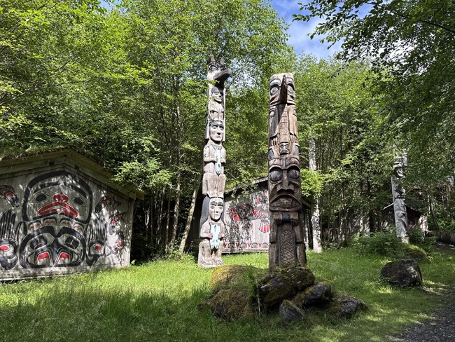 Ketchikan was our next stop — a colorful waterfront town lined with totem poles and vibrant galleries. Walking through Creek Street, a historic boardwalk perched above the river, we could almost feel the whispers of its gold rush past.