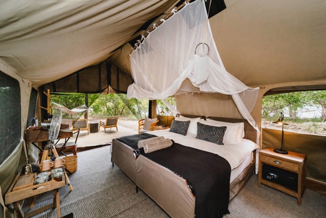 Days here move at river pace. You might start with a bush walk, shoes soaked in dew as your guide points out lion tracks pressed into the sand. Later, take a slow drift by boat past nesting bee-eaters, or just watch the light shift across the water from your tent’s shaded deck. There is time for listening, for learning the language of the river: the warning bark of a baboon, the steady buzz of cicadas, the faint splash of a distant fish eagle diving for its breakfast.